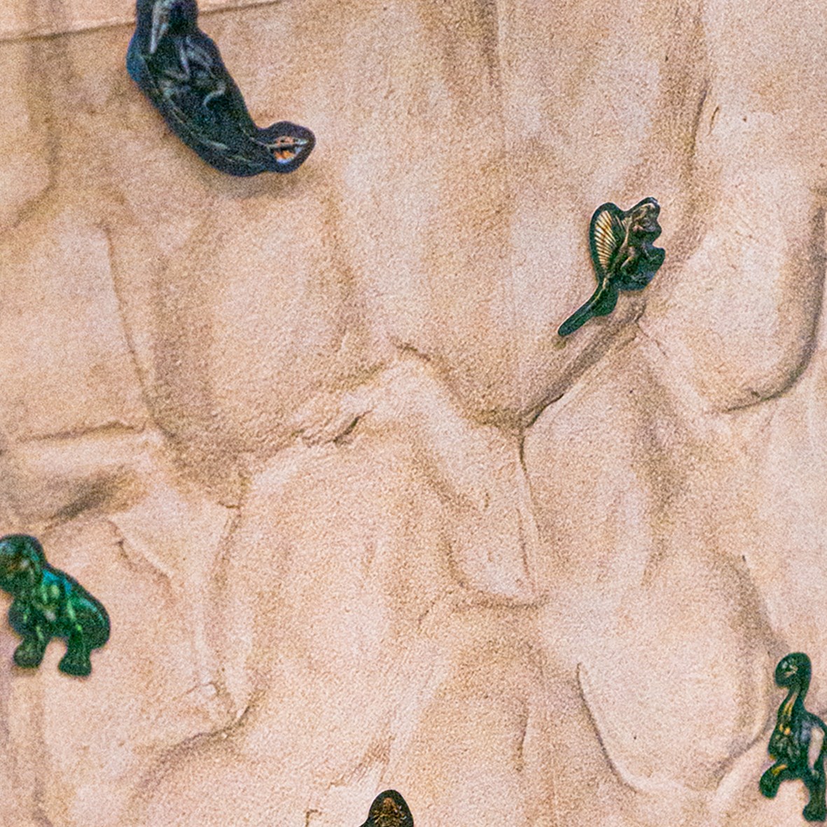 Festgeklebt und wieder abgerissen. Der ursprüngliche Plan ist verloren gegangen. Geblieben ist ein Rahmen ohne Bild und ohne Glas. Nur die Rückwand. Sie ist montiert an der Wand aber auch dieser Haken wird abbrechen. Wenigstens passiert mal was. Dazwischen liegen rohe Tonkörper. Poliert. Die letzte Person muss den Wassersprenkler abstellen. Irgendwo tropft Wasser.